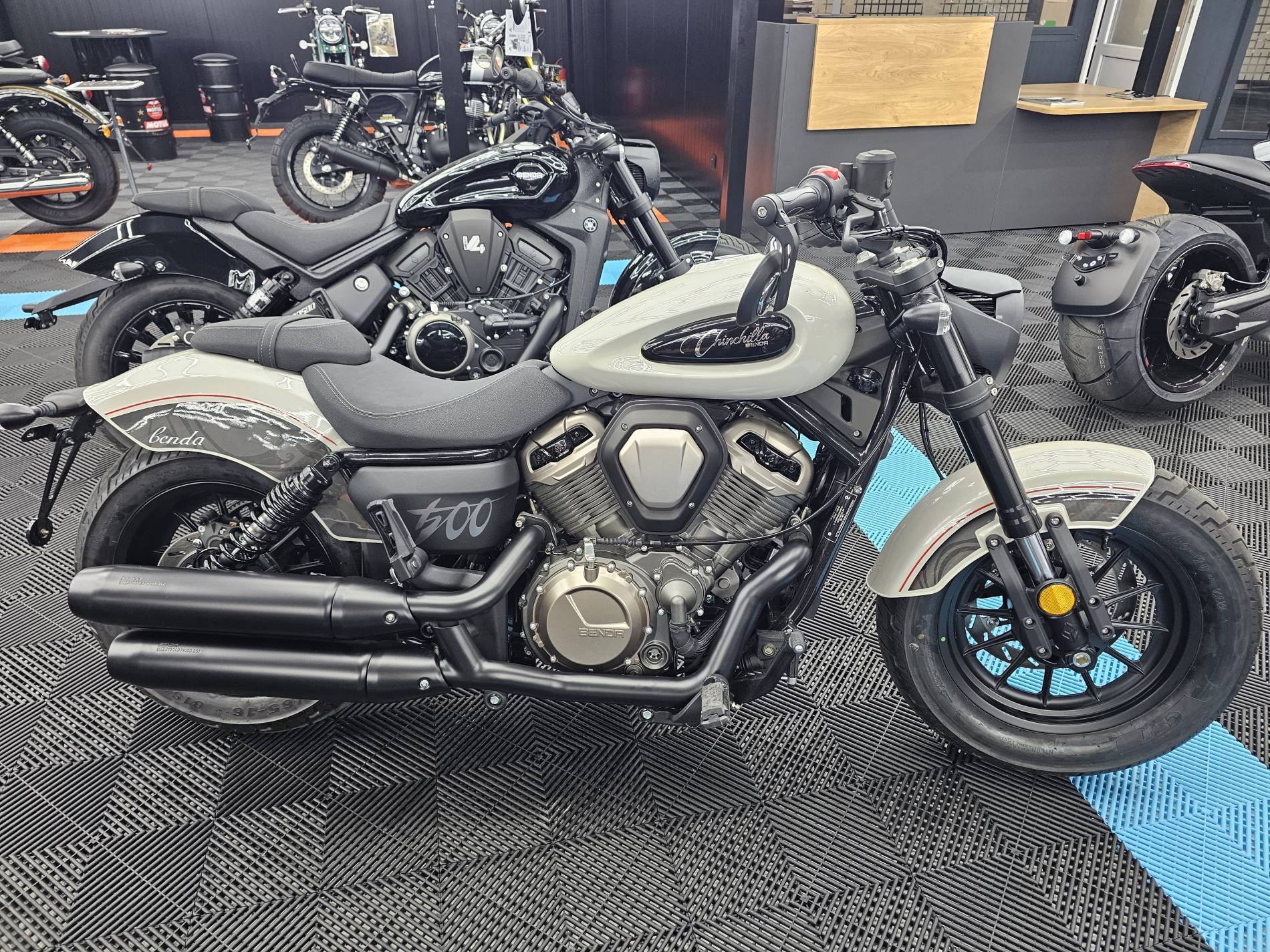 Platinium Motos votre concessionnaire Benda à Montauban vous propose à la vente cette magnifique moto, modèle CHINCHILLA 500, moteur bicylindres en V de 500cc à refroidissement liquide, 47cv et 42N.m, boîte 6 vitesses, compatible permis A2.