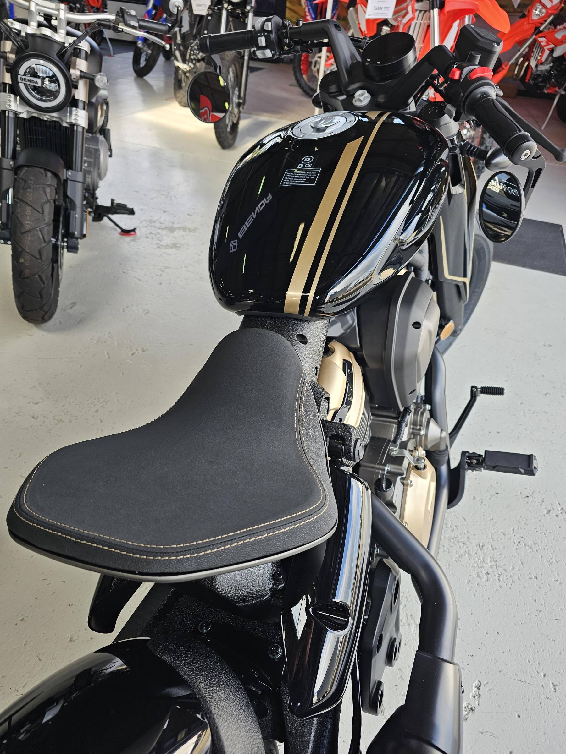 Utilitaires et Loisirs votre distributeur Benda à Montauban vous propose à la vente cette magnifique moto, modèle NAPOLEON 500, moteur bicylindres en V de 500cc à refroidissement liquide, puissance 50cv, boîte 6 vitesses, compatible permis A2.