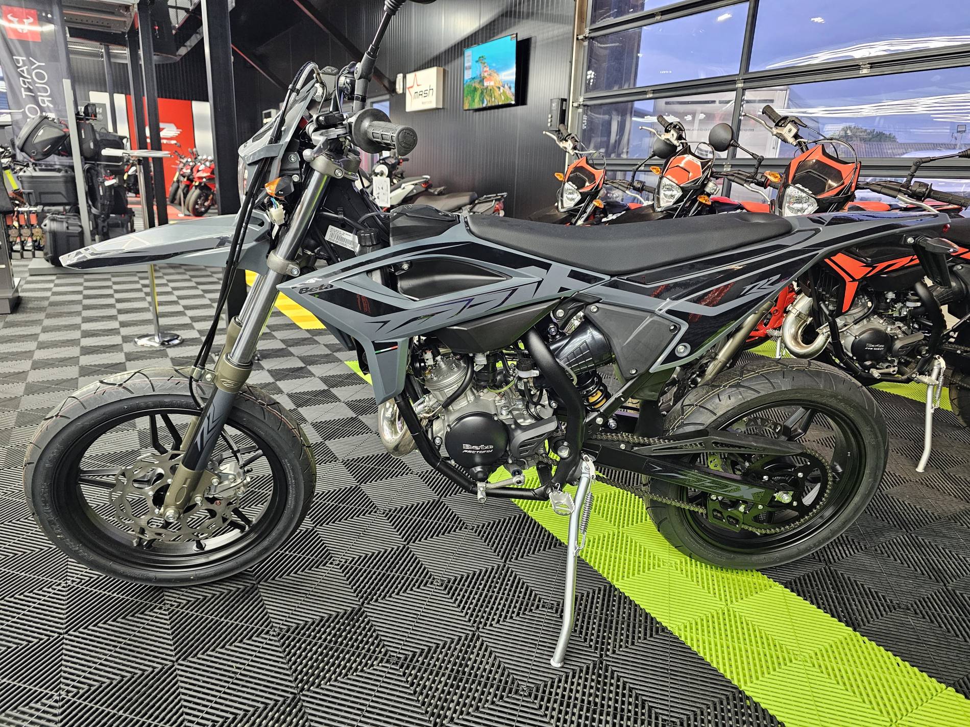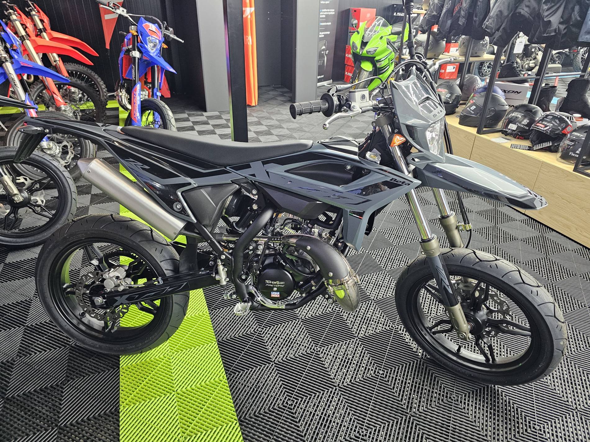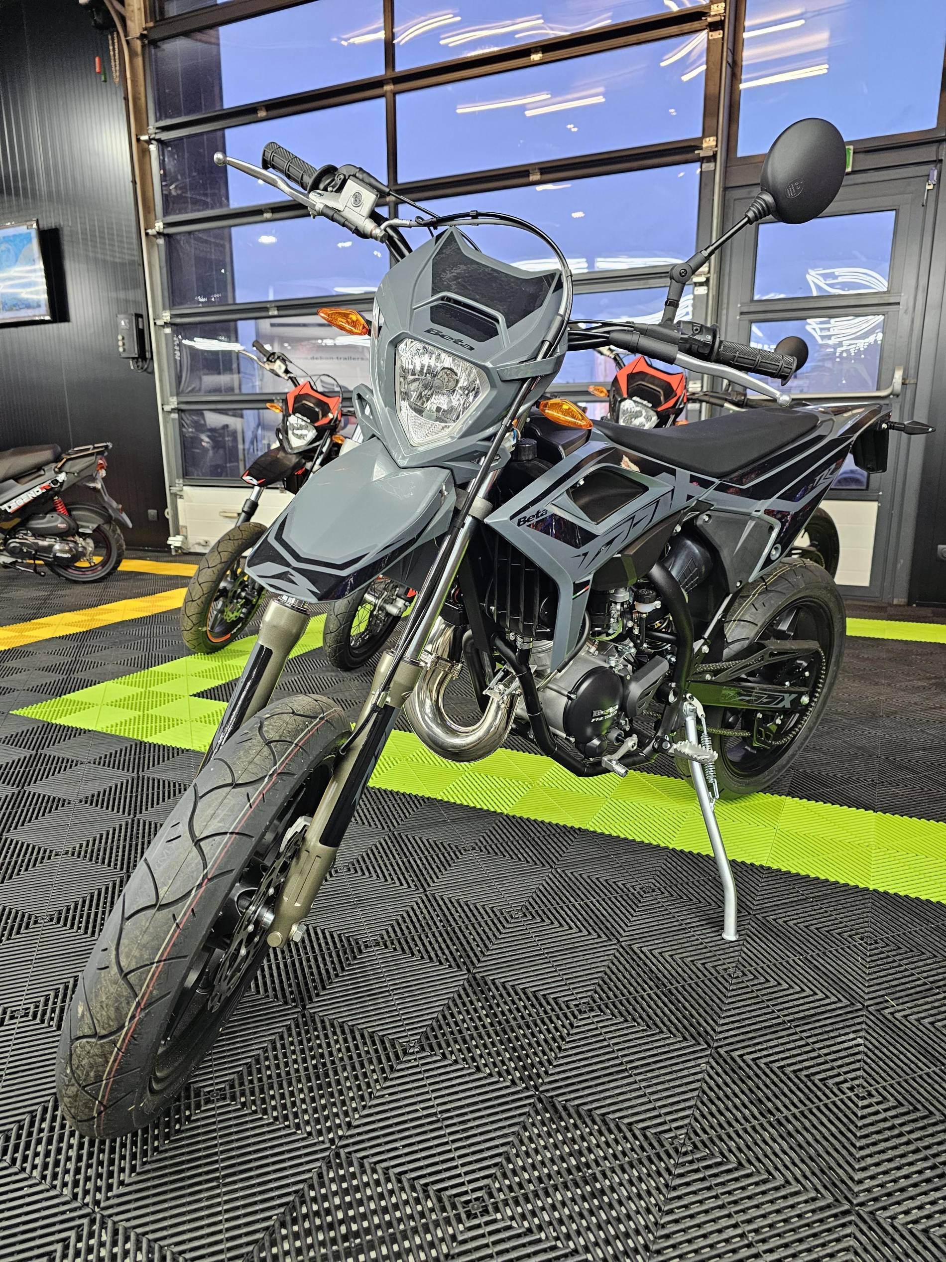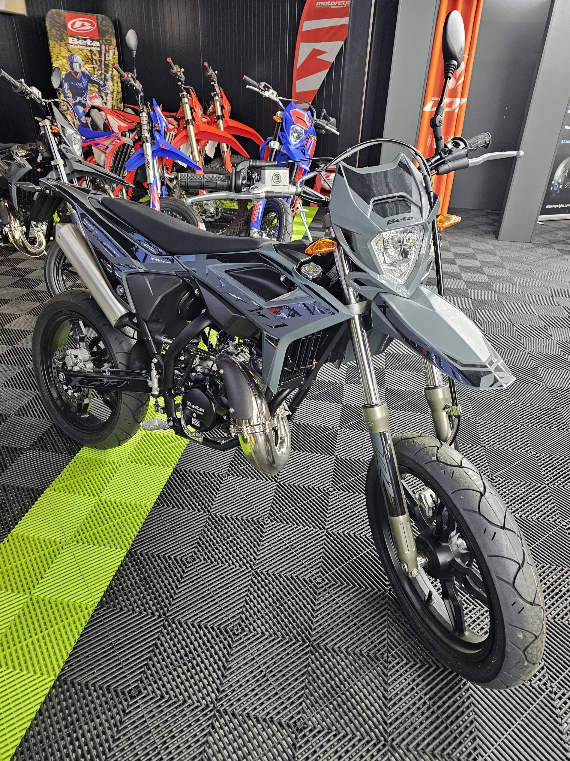 Platinium Motos votre concessionnaire Beta à Montauban vous propose à la vente cette moto, modèle 50RR Motard 2T, coloris gris et noir.