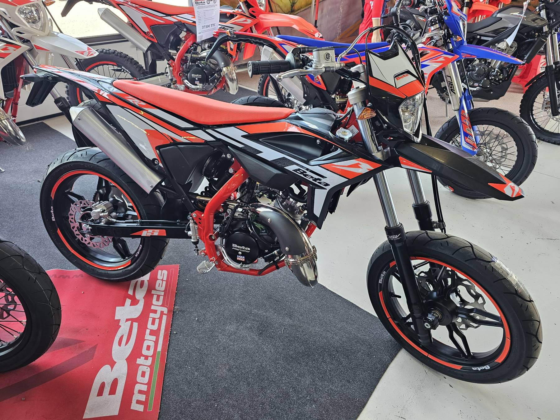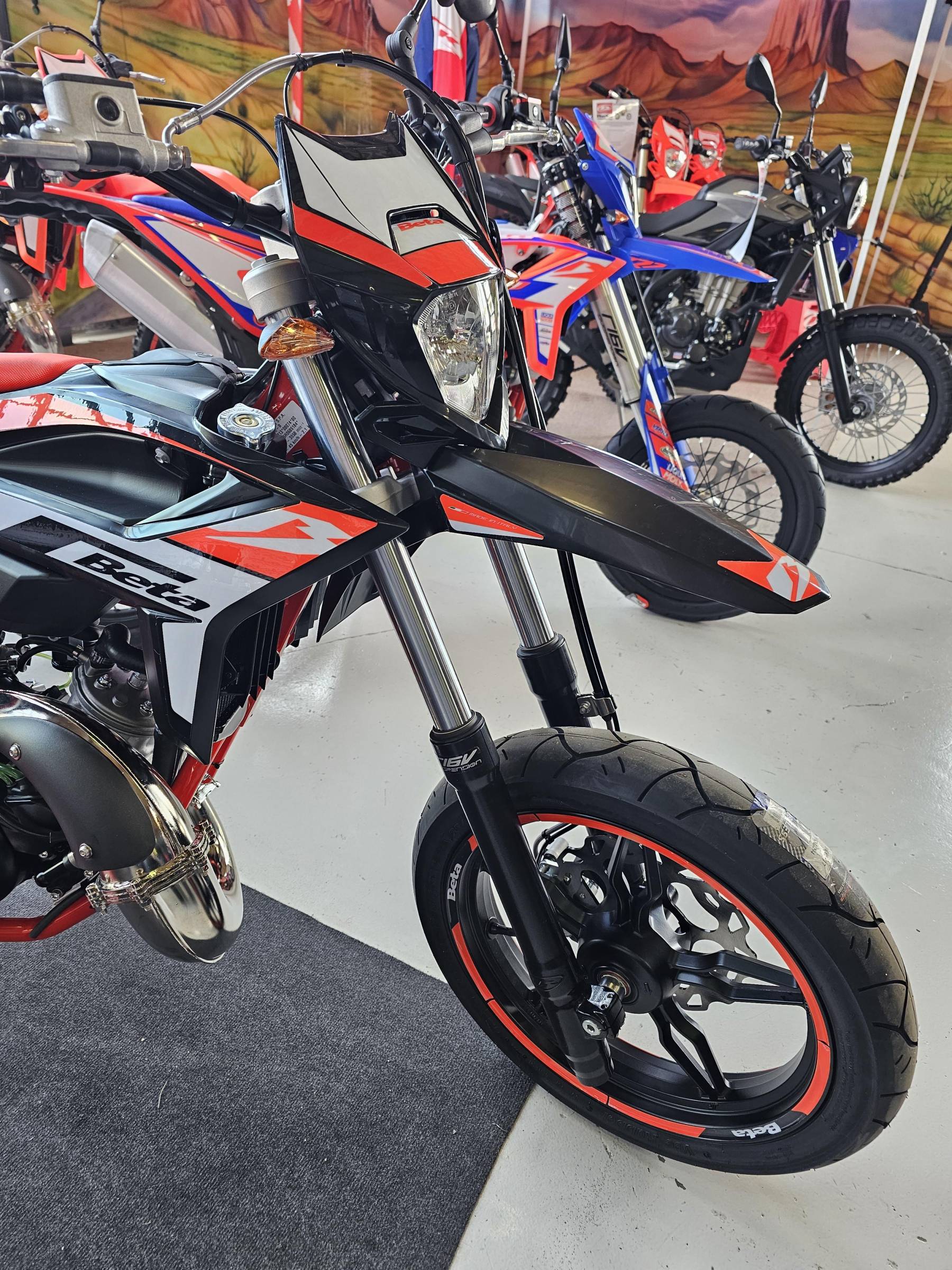 Réplique de ses grandes sœurs, la gamme 50 RR Motard 2T bénéficie d'un nouveau châssis et surtout d'un moteur revu pour répondre d'avantage à la norme Euro 5. La Beta 50RR plaît avec son look racing tout droit arrivé des modèles enduro de la marque Italienne.