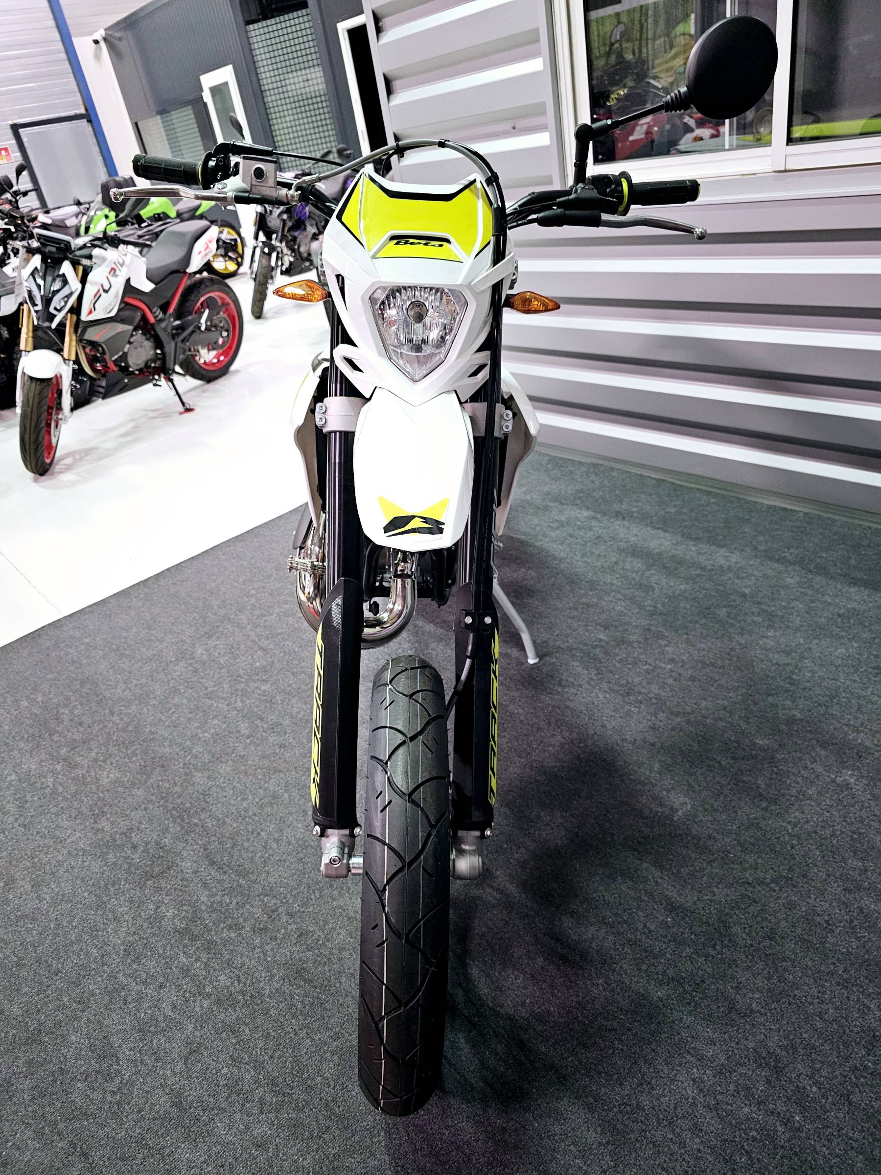Votre distributeur Beta à Montauban vous propose à la vente cette moto, modèle 50RR Motard Track 2T, coloris jaune et blanc.
