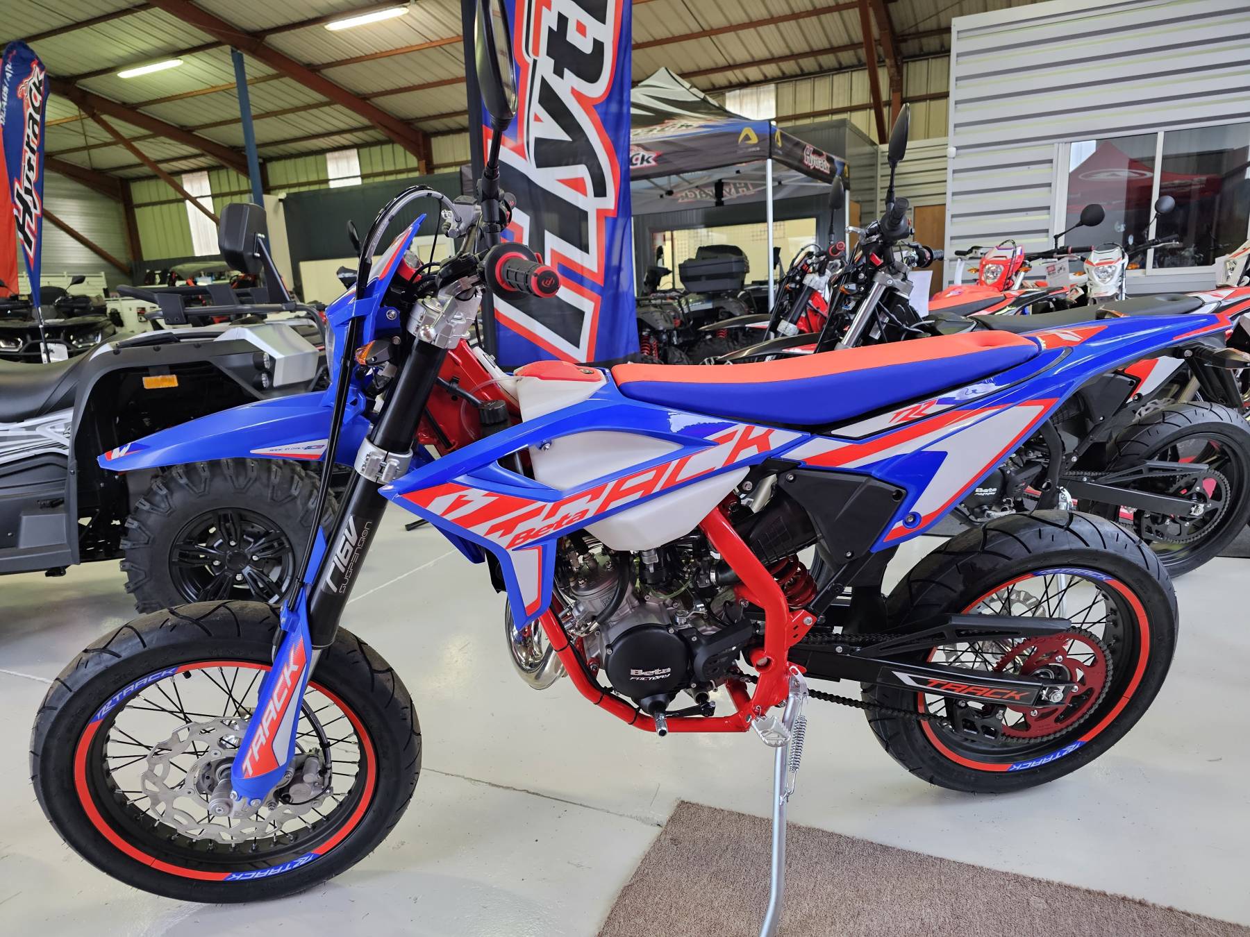 Votre distributeur Beta à Montauban vous propose à la vente cette moto, modèle 50RR Motard Track 2T, coloris bleu et rouge.
