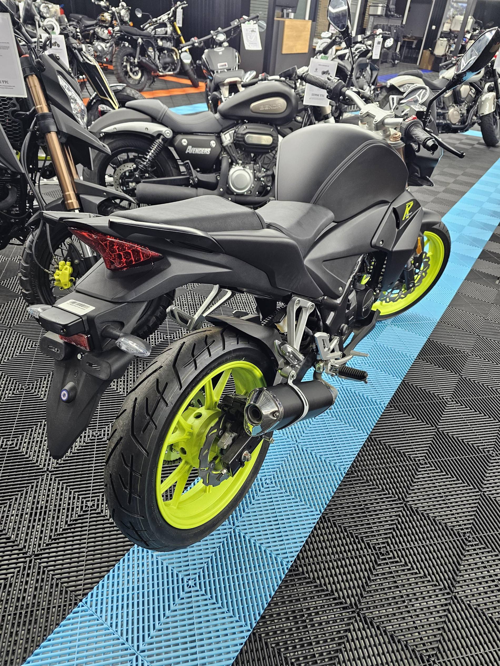 Cette 50 ne ressemble pas à une 50 conventionnelle : l’effet « moto gros cube » est présent, grâce à sa fourche inversée, ses disques de frein 220mm et 320mm coiffés d’un étrier 4 pistons radial, la présence d’un compteur LCD avec choix de la couleur d'écran (7 couleurs au choix) et d’un compte-tours analogique, mais également une ergonomie qui se rapproche sur le plan du look et du dynamisme. Digne des plus grandes!
