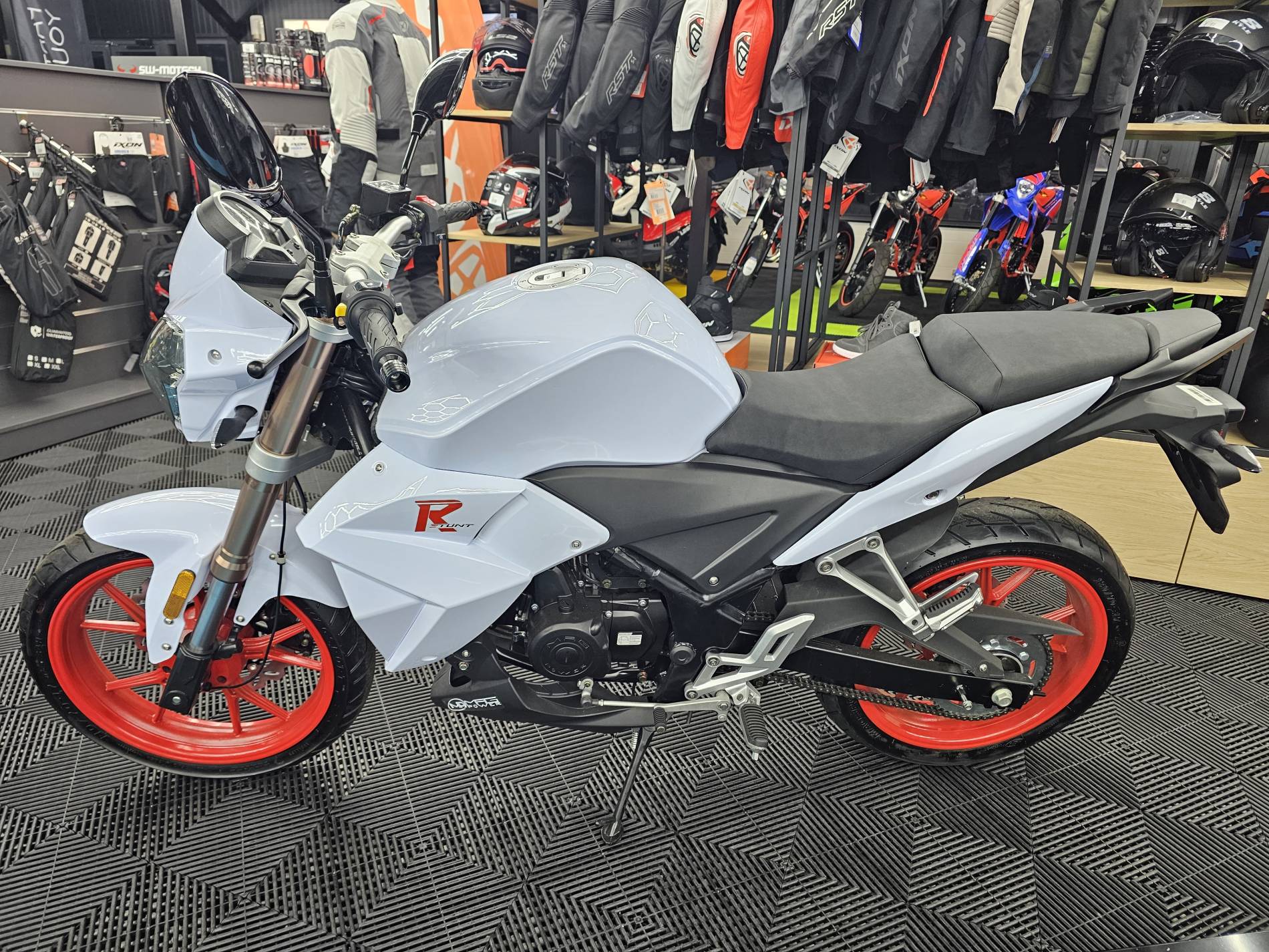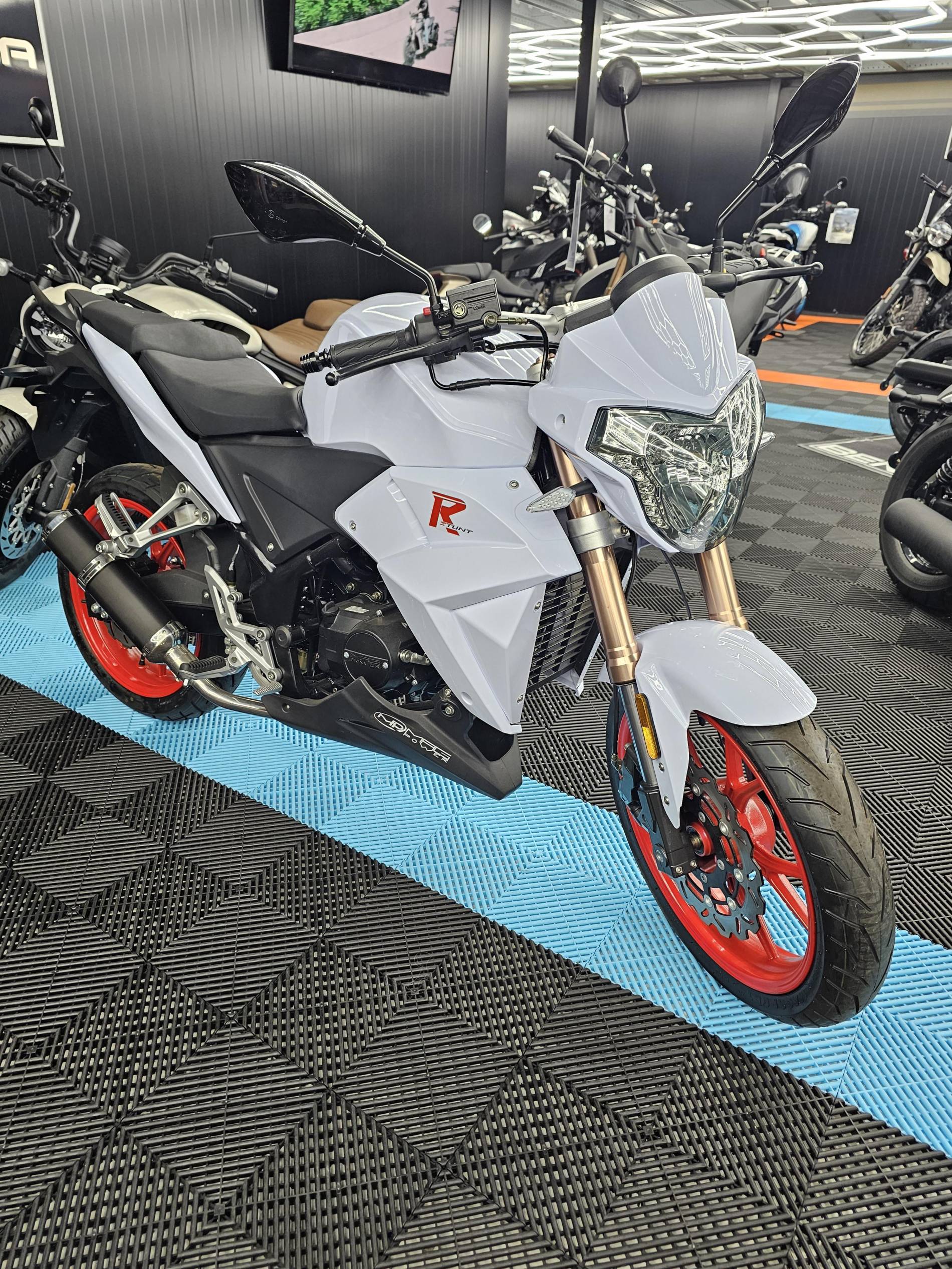 Platinium Motos votre concessionnaire Magpower à Montauban vous propose à la vente cette moto 50cc, modèle R-Stunt, coloris blanc et rouge.