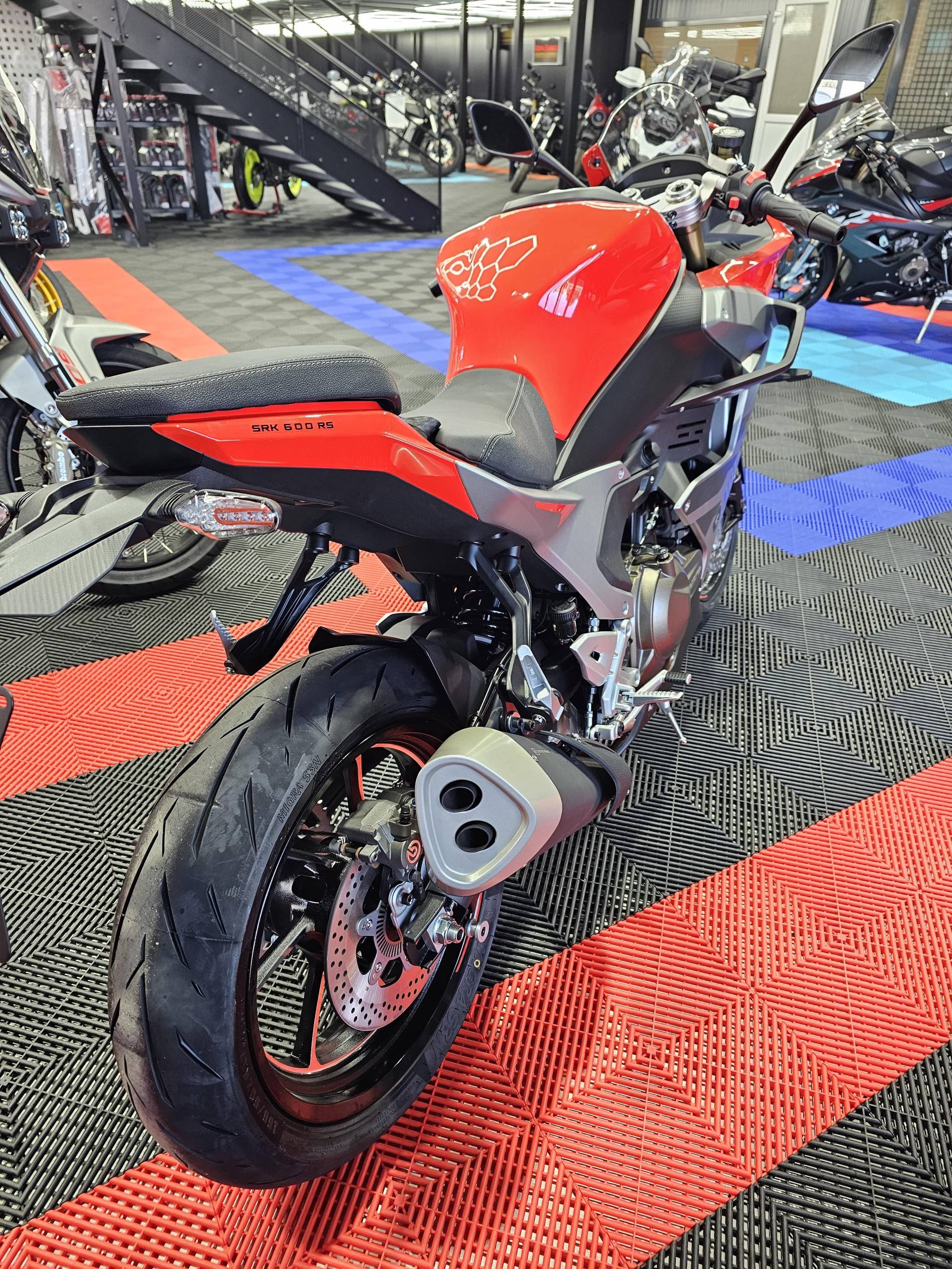 La SRK 600 RS incarne à la perfection la sportivité moderne, alliée à une technologie de pointe et un design affûté. Avec son moteur bicylindre de 554cm³ développant 56cv, cette sportive accessible (bridable A2) ne fait aucun compromis entre puissance et maîtrise.