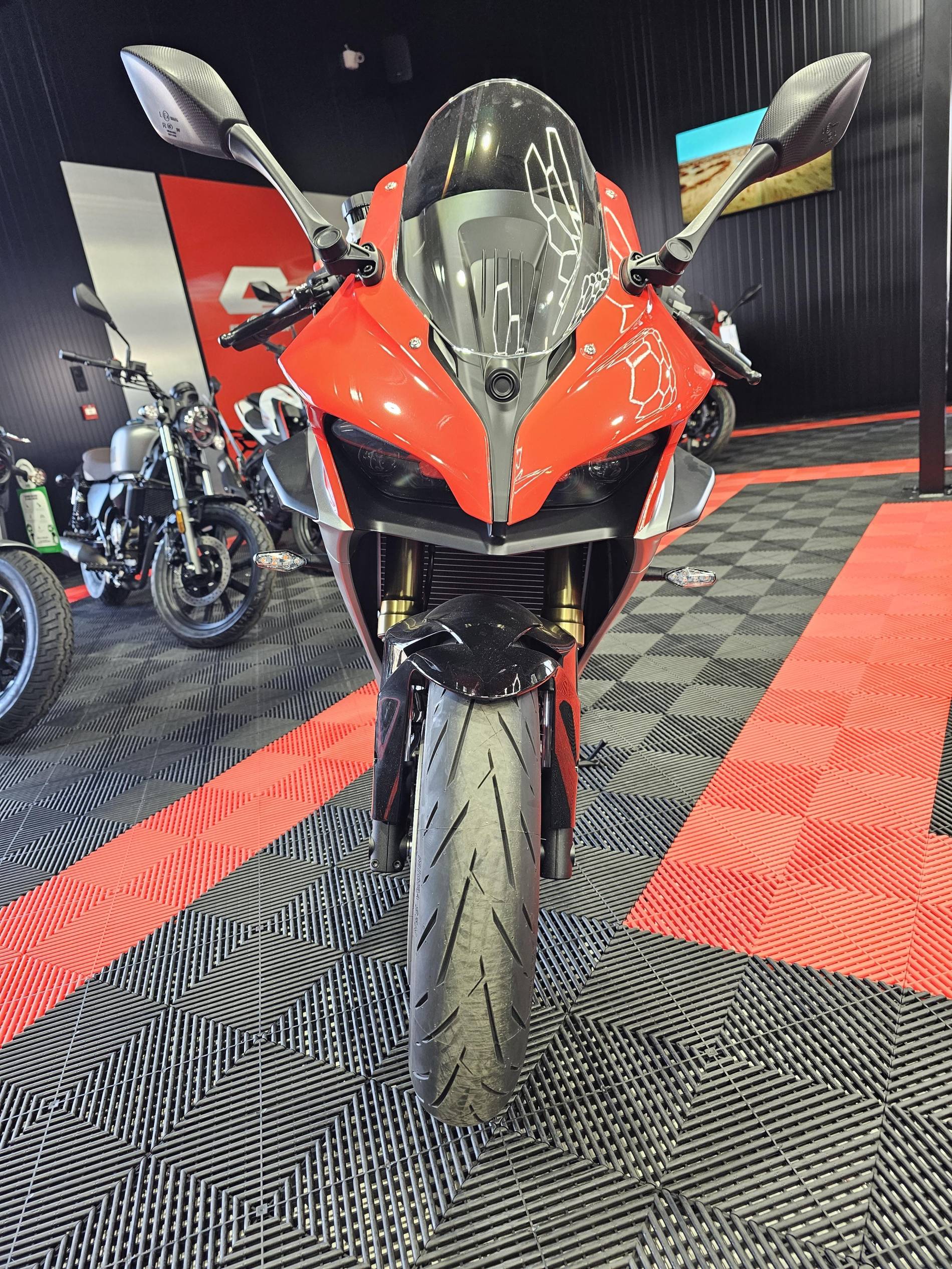 Tableau de bord couleur, clair et complet : indicateur de rapport engagé, pression pneus avant/arrière, compte-tours avec shift-light, contrôle de traction désactivable.