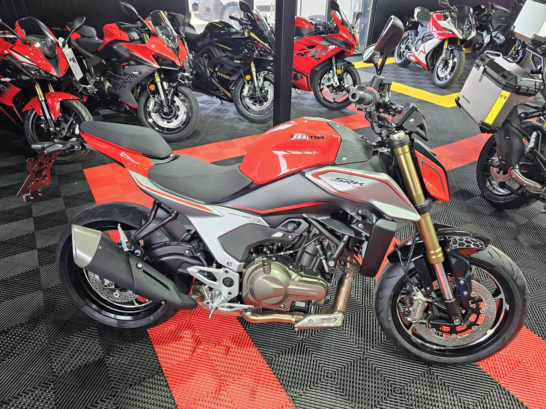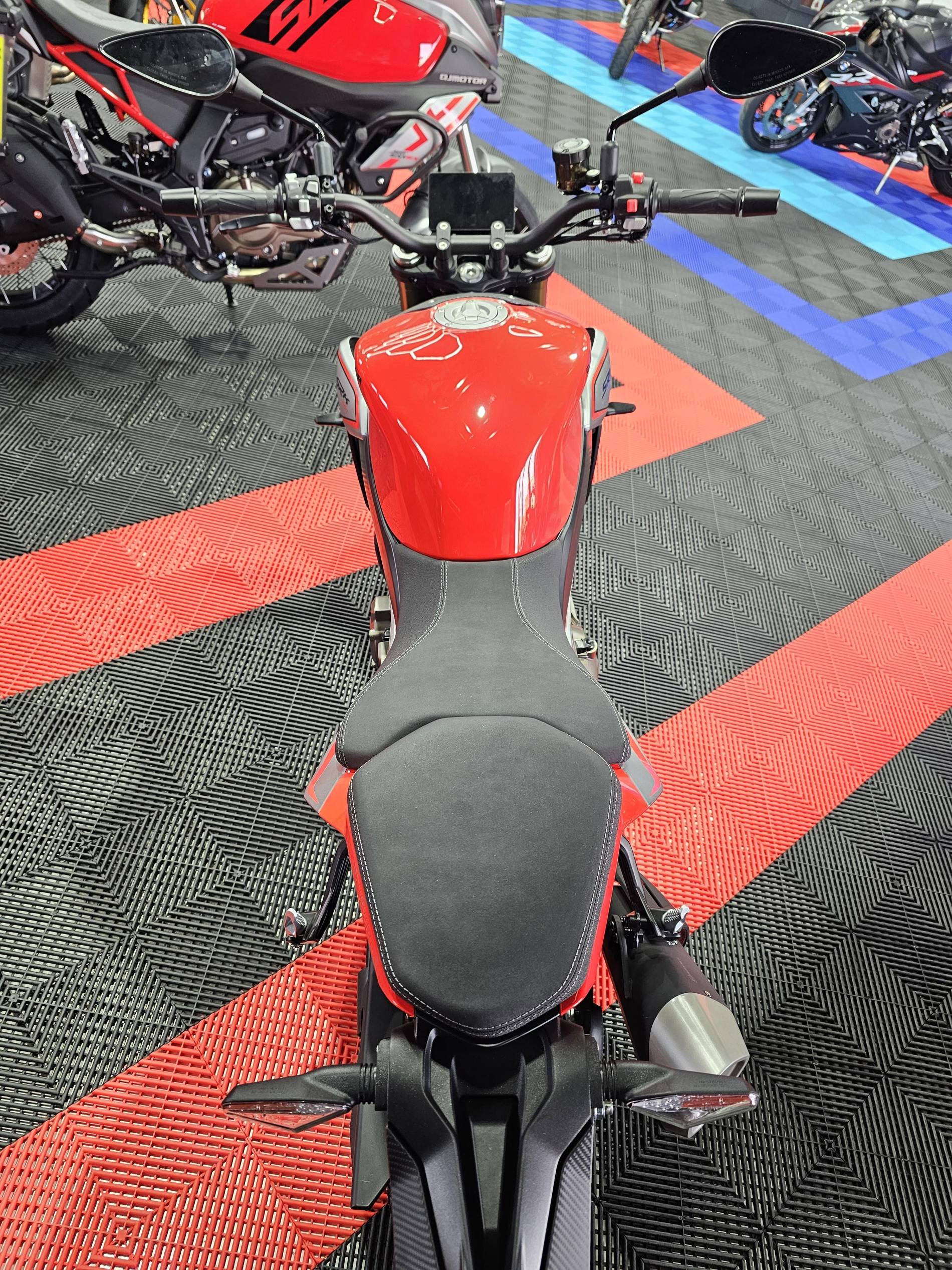 Pensée pour offrir un équilibre parfait entre performance et maîtrise, la SRK600 s’appuie sur des composants de premier plan : suspensions Marzocchi, freinage Brembo, contrôle de traction, et écran TFT 5” pour une lecture claire et intuitive.