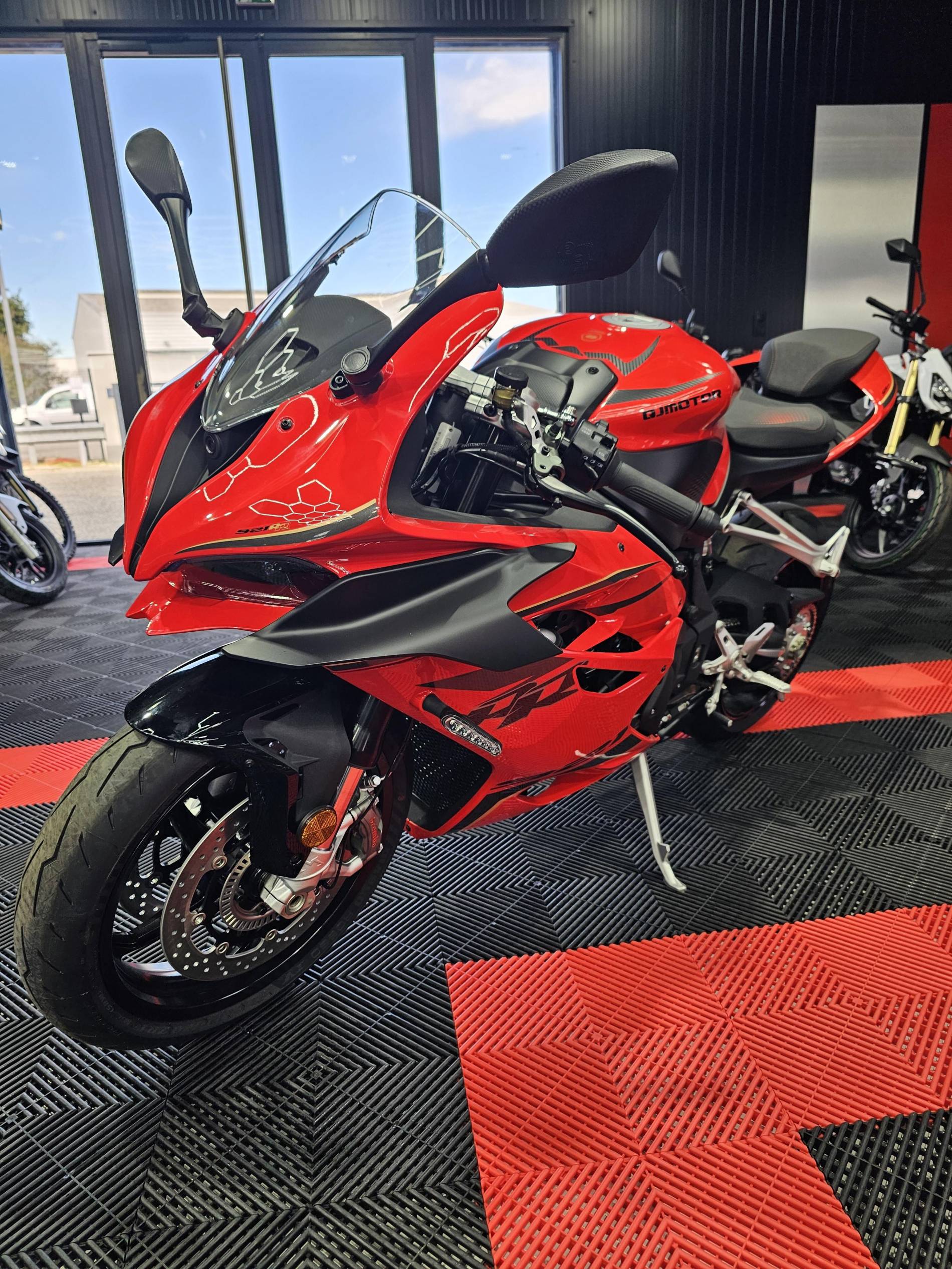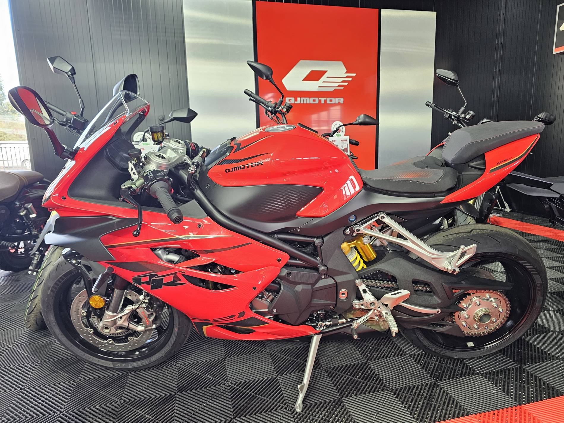 Platinium Motos votre distributeur QJ Motor à Montauban (82) vous propose à la vente cette magnifique moto sportive modèle SRK 921 RR, moteur 4 cylindres en ligne 16 soupapes de 921cc à refroidissement liquide, 128cv et 93Nm: