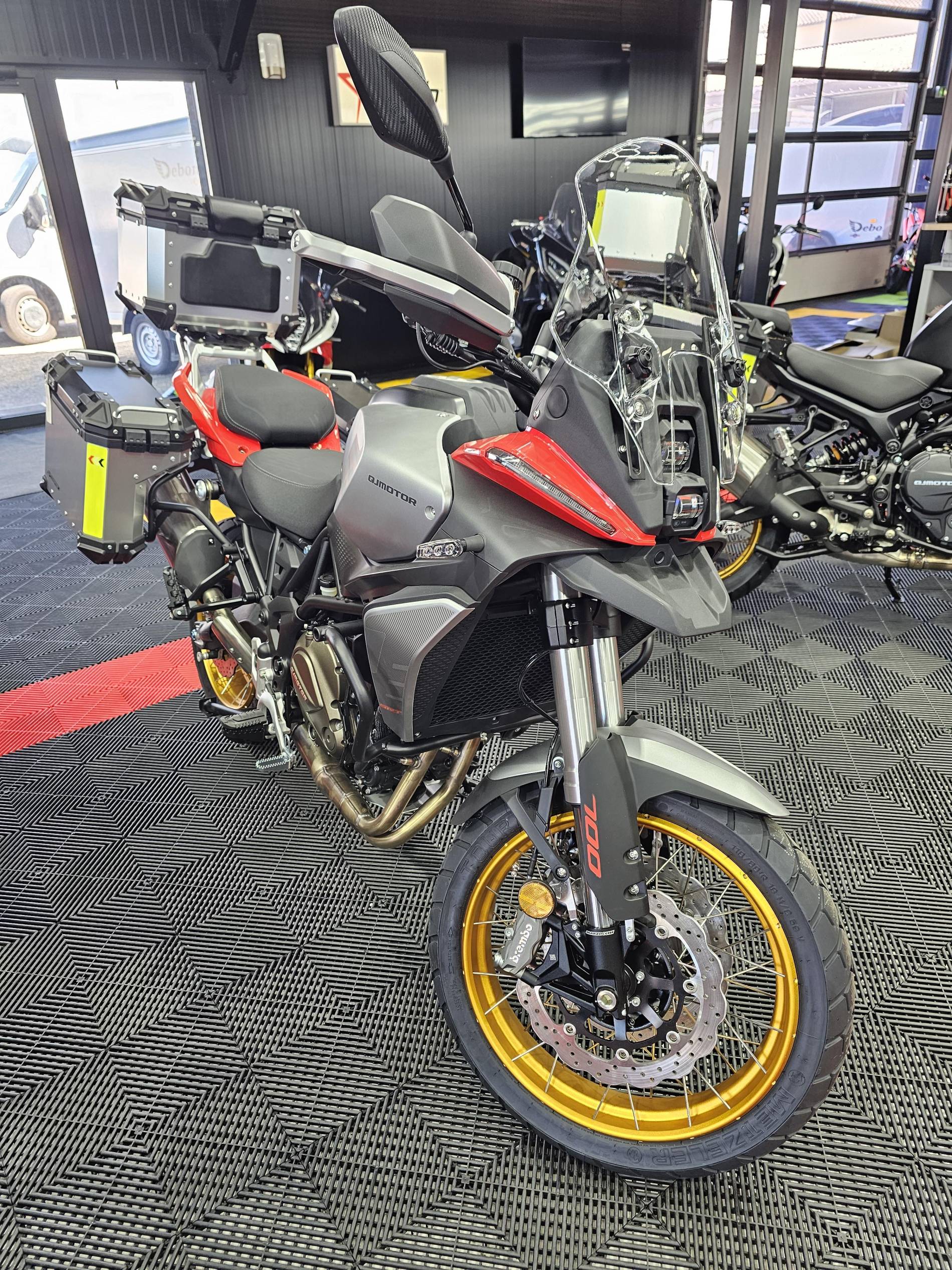 Platinium Motos votre distributeur QJ Motor à Montauban (82) vous propose à la vente cette magnifique moto trail modèle SRT 700 SX Touring moteur bicylindre en ligne 8 soupapes de 698cc à refroidissement liquide, 70cv et 70Nm, compatible permis A2 (35kW-47cv):
