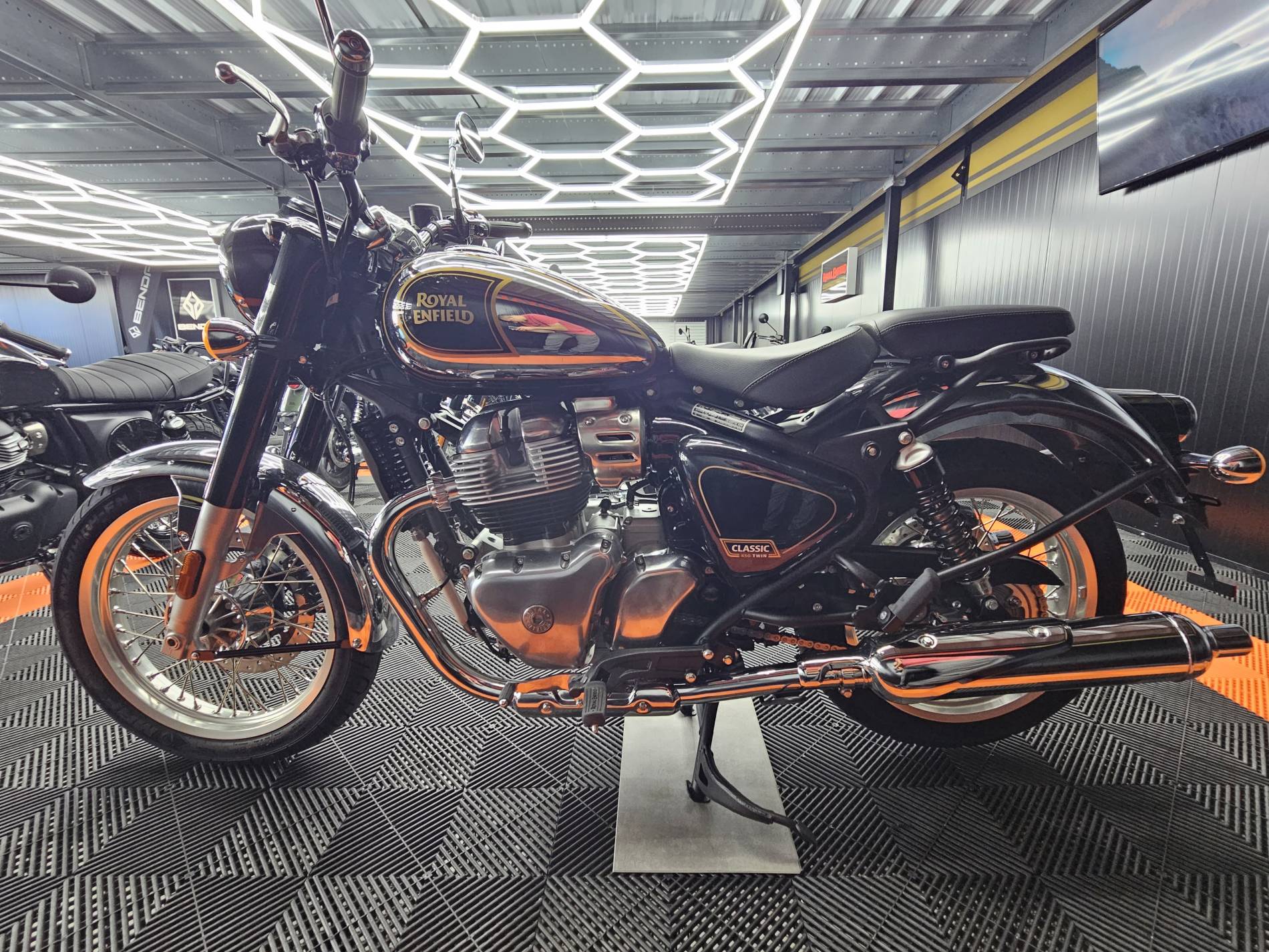 Platinium Motos votre concessionnaire Royal Enfield à Montauban (82) vous propose à la vente cette magnifique moto néo-rétro modèle Classic 650 moteur bicylindre 4 temps de 648cc refroidissement air-huile, 47cv et 52,3Nm, compatible permis A2 :